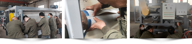 污泥壓濾機是利用濾布兩邊的壓力差,迫使物料中的絕大部分水分透過濾布,流出機體外,而物料被阻隔在濾室內(nèi)形成濾餅,以達到過濾的目的。由于在過濾過程中濾布兩邊存在著較大的壓力差,提高了過濾速度降低了濾餅的含水。